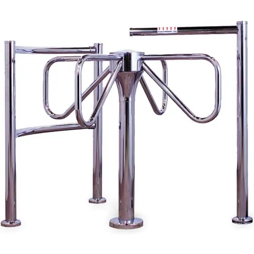 4-Arm Turnstile w/ Posts and Rails Counter Clockwise Direction - Satin Chrome