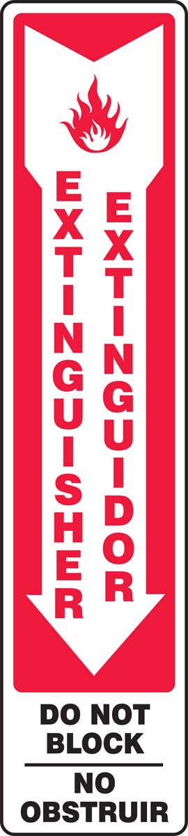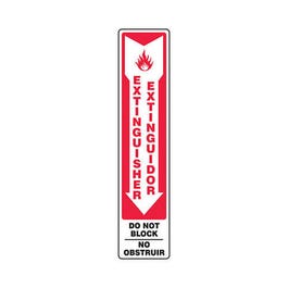 Accuform SBMFXG934VP Plastic Spanish Bilingual Sign, Extinguisher DO NOT Block/EXTINGUIDOR NO OBSTRUIR (Arrow)", 18" Length x 4" Width x 0.055" Thickness, Red/Black on White