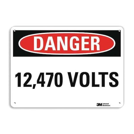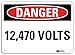 Danger Sign, Vertical Rectangle, Number of Printed Sides 1, English, Sign Format Traditional OSHA, Sign Legend 12,470 Volts, Sign Legend Background Color White, Sign Legend Style Text