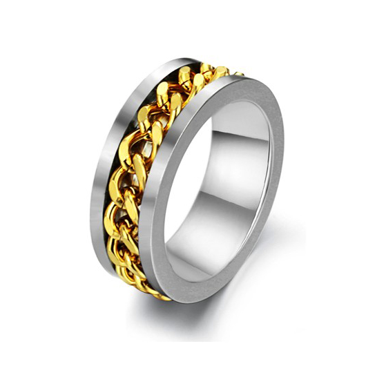 CET Domain SZ17-R082-10 Titanium Steel Gold Chain Band Ring-Size 10