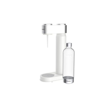Highlights: Color: White Capacity: 1 Liter Height: 16.67 inch Length: 9.43 inch Width: 4.9 inch Bottle Material: Stainless Steel/Plastic Dishwasher Safe Parts: Yes Bottle connection: Twist Customize your drinks by controlling carbonation level Customize the carbonation levels based on your personal preference Simply re