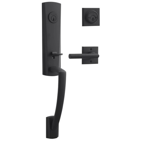 Reserve Miami Collection - Handleset with Right Handed Tube Lever and Contemporary Square Rose in Satin Black by Baldwin Hardware - DCMIAXTUBRCSR190 | MyKnobs