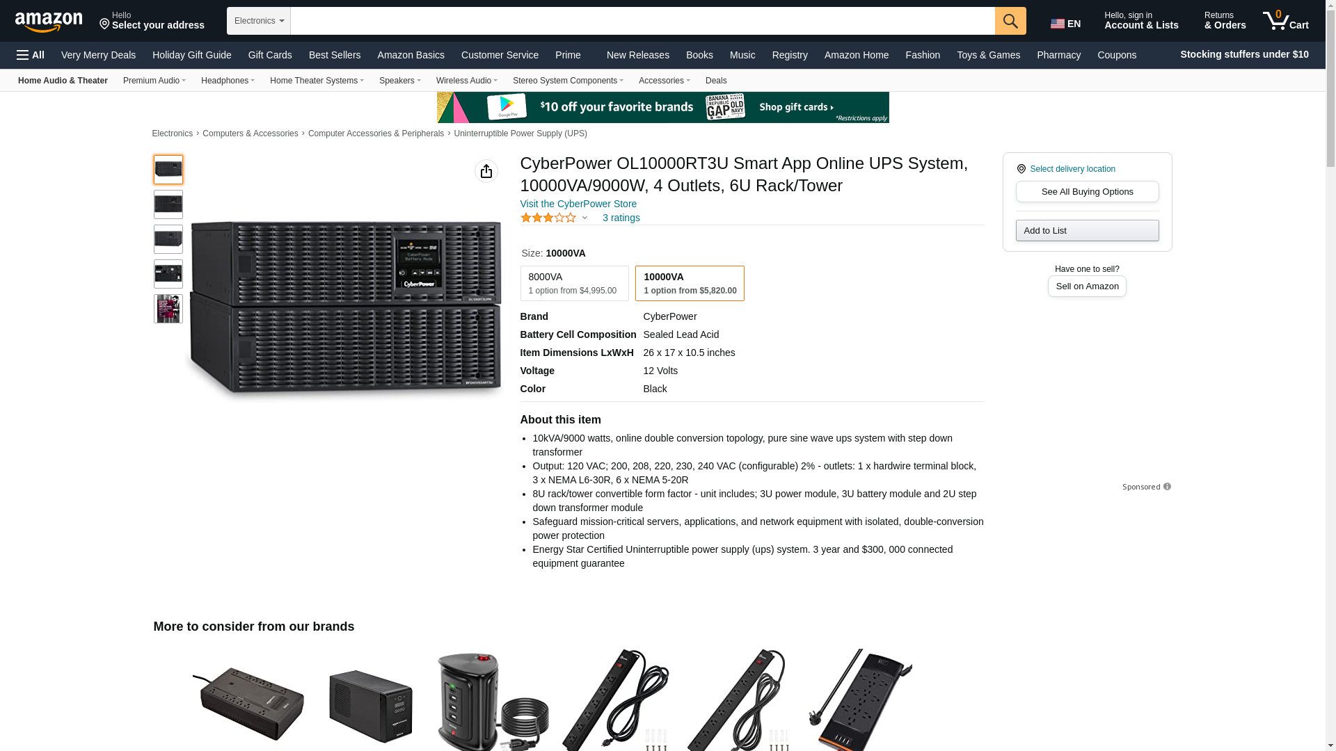 CyberPower OL10000RT3UTF Smart App Online UPS System, 10000VA/9000W, 10 Outlets, 8U Rack/Tower