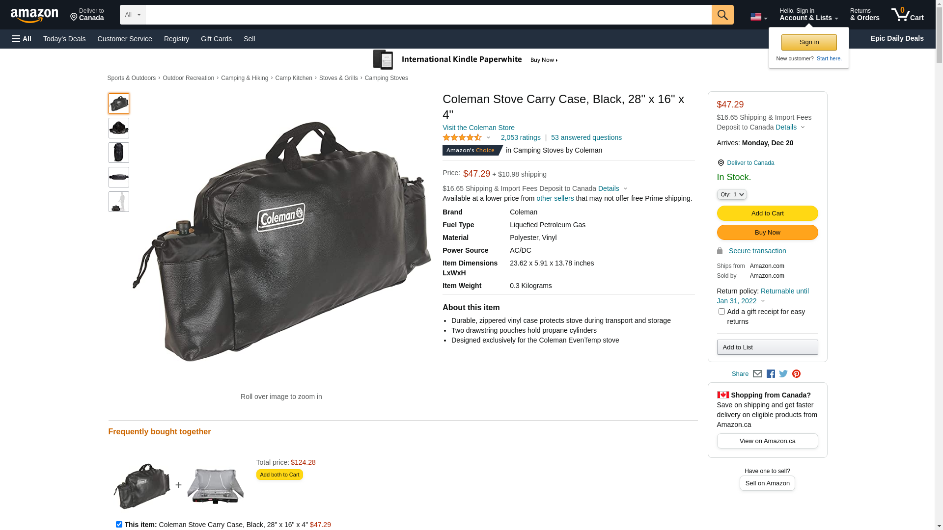 Coleman Camping Stove Carry Case 2000020971 , 10% Off with Free S&H — CampSaver