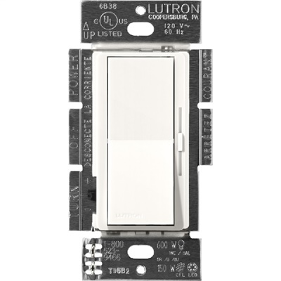 Lutron DVSCLV-103P-BW Diva Satin 1000VA, 800W Magnetic Low Voltage 3-Way Dimmer in Brilliant White