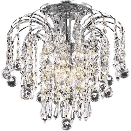 The Addison collection of fixtures captures the exhilarating brilliance of a fireworks display, with dazzling layers of clear Crystal strands radiating and cascading from the gleaming frame. With light glowing through the many shapes of Crystal adornments, this design exudes unmatched iridescence and shine.<br/><br/>Features :<br/><br/>- Materials: Steel metal<br/>- Finish: Chrome<br/>- The fixture's bright chrome finish enhances its impressive appearance<br/>- Illumination comes from 3 candelabra bulbs (not included).<br/><br/>Specifications :<br/><br/>- Product Dimensions : 12"H x 12"W x 12"D<br/>- Product Weight : 15 lbs<br/>- Hardware : Fixture Shape - Flush Mount<br/>- Bulb Type : Bulb Shape - B10, Bulb Socket - E12<br/>- Number of Lights : 3<br/>- Voltage : 110V - 125V<br/>- Wattage : Bulb Wattage - 40W, Max Wattage - 120W<br/>- Hardware : 11.81" of clear wire included<br/>- Adjustability : Height Adjustable<br/>- Product Height : Hanging Height - 13" Min to 13" Max.