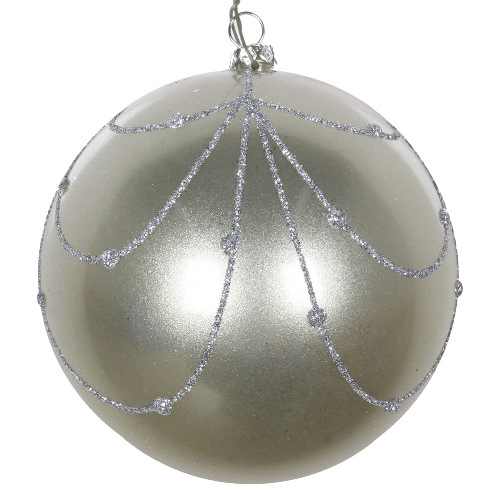4" - Limestone - Candy - Glitter Curtain - Ball | Vickerman Christmas Tree Ornament (4 pack)