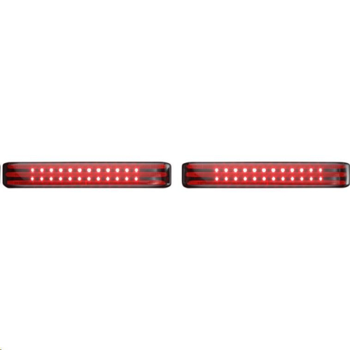 Custom Dynamics ProBEAM BAGZ add on saddle bag lights are compatible with Harley-Davidson OEM hard saddle bags on 2014-2023 Harley-Davidson Street Glide (FLHX), Street Glide Special (FLHXS), Ultra Limited (FLHTK), 2015-2023 Road Glide (FLTRX), Road Glide Special (FLTRXS), 2017-2023 Road King Special (FLHRXS), 2022-2023 CVO Road Glide Limited (FLTRKSE), 2020-2023 Road Glide Limited (FLTRK), 2014-2019 Electra Glide Ultra Classic (FLHTCU), 2015-2016 Ultra Classic Lo (FLHTCUL), 2016 CVO Road Glide Ultra (FLTRUSE), 2016-2019 Road Glide Ultra (FLTRU), 2015-2018 Ultra Limited Lo (FLHTKL) and 2016-2021 CVO Limited (FLHTKSE). They adhere under the lip of the saddle bag lid. Engineered from the ground up using the highest-quality automotive-grade LEDs and modern light pipe design. Each unit has 3 light pipes that illuminate across the bag with 24 separate LEDs to provide a full contrast brake light with standard or sequential turn signal (depending on configuration). Available with choice of chrome or gloss black housing with a smoked or red lens. Chrome BAGZ have a chrome reflector, black BAGZ utilize a black reflector. BAGZ come with plug and play IP67 rated weatherproof quick disconnect to make future removal of saddle bags quick and easy. Lifetime Warranty Against LED Failure. These saddlebag lights are an aftermarket accessory lighting product manufactured by Custom Dynamics to be compatible with certain Harley-Davidson motorcycles. They are not OEM.