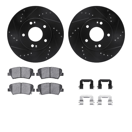 Dynamic Friction Company Front Brake Rotors Drilled and Slotted Black with 5000 Advanced Brake Pads includes Hardware - 8512-03076