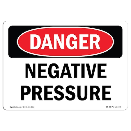 OSHA Danger Sign, Negative Pressure, 14in X 10in Rigid Plastic