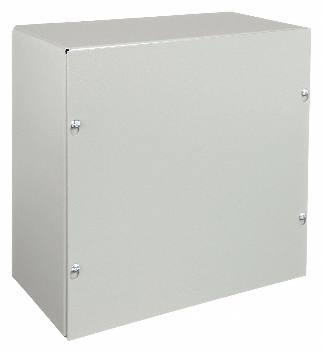 'Junction Box Enclosure, Metallic, Height 18.00 In., Width 18.00 In., Depth 6.00 In., Material Carbon Steel, No Knockouts, NEMA Rating 1, Finish ANSI 61 Polyester Powder, Screw On Enclosure Cover Type, Enclosure Cover Features Plated Steel Screws, Metal Gauge 16, Color Gray, Series SC, Wall Mounting, Usable Opening Depth 6.00 In., Features Embossed Mounting Holes, Includes Self Tapping Screws, Standards UL Listed, CSA Certified'