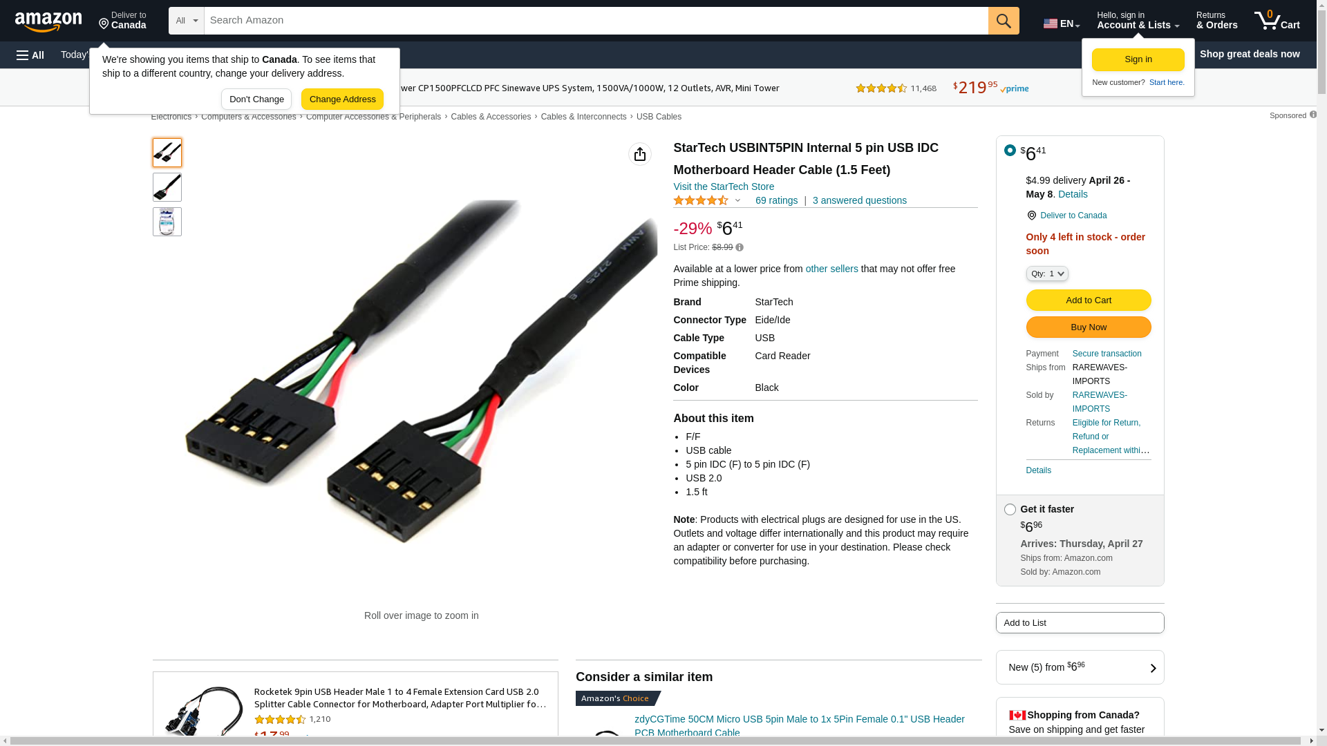 ![]() homeessentialsdirect.com | USBINT5PIN | 1 | -2 | 1 | 1 @ $22.25 |