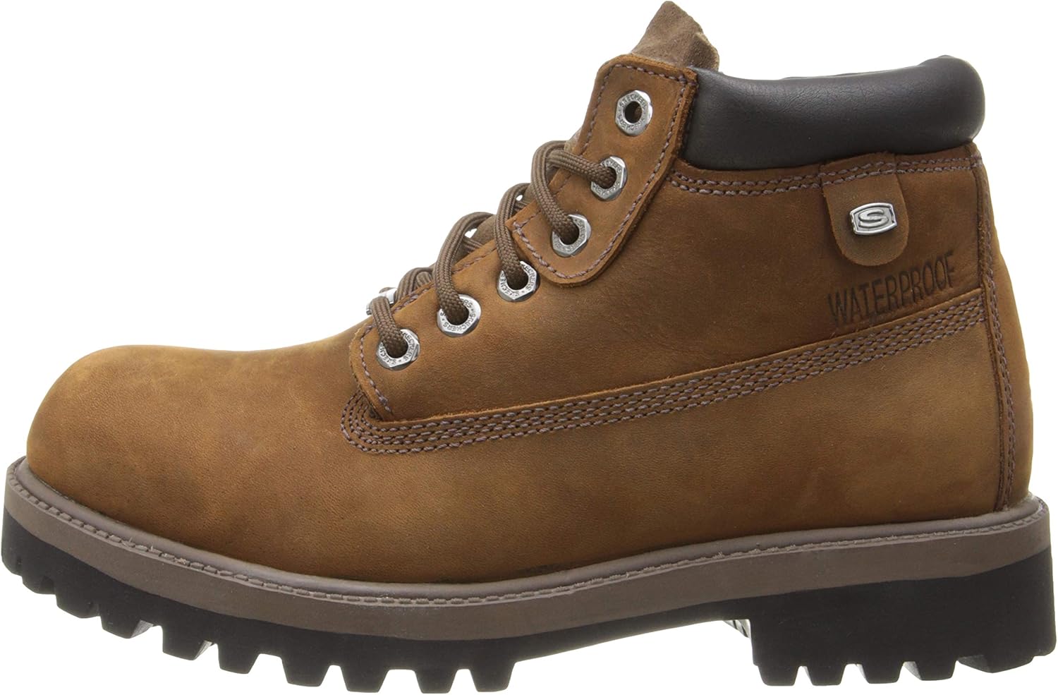 Skechers Verdict boot has what it takes to get the job done. Its waterproof leather upper and lace-up construction offer protection, while its padded tongue and collar, cushioned insole, and heavy-duty lugged outsole provide comfort and traction.