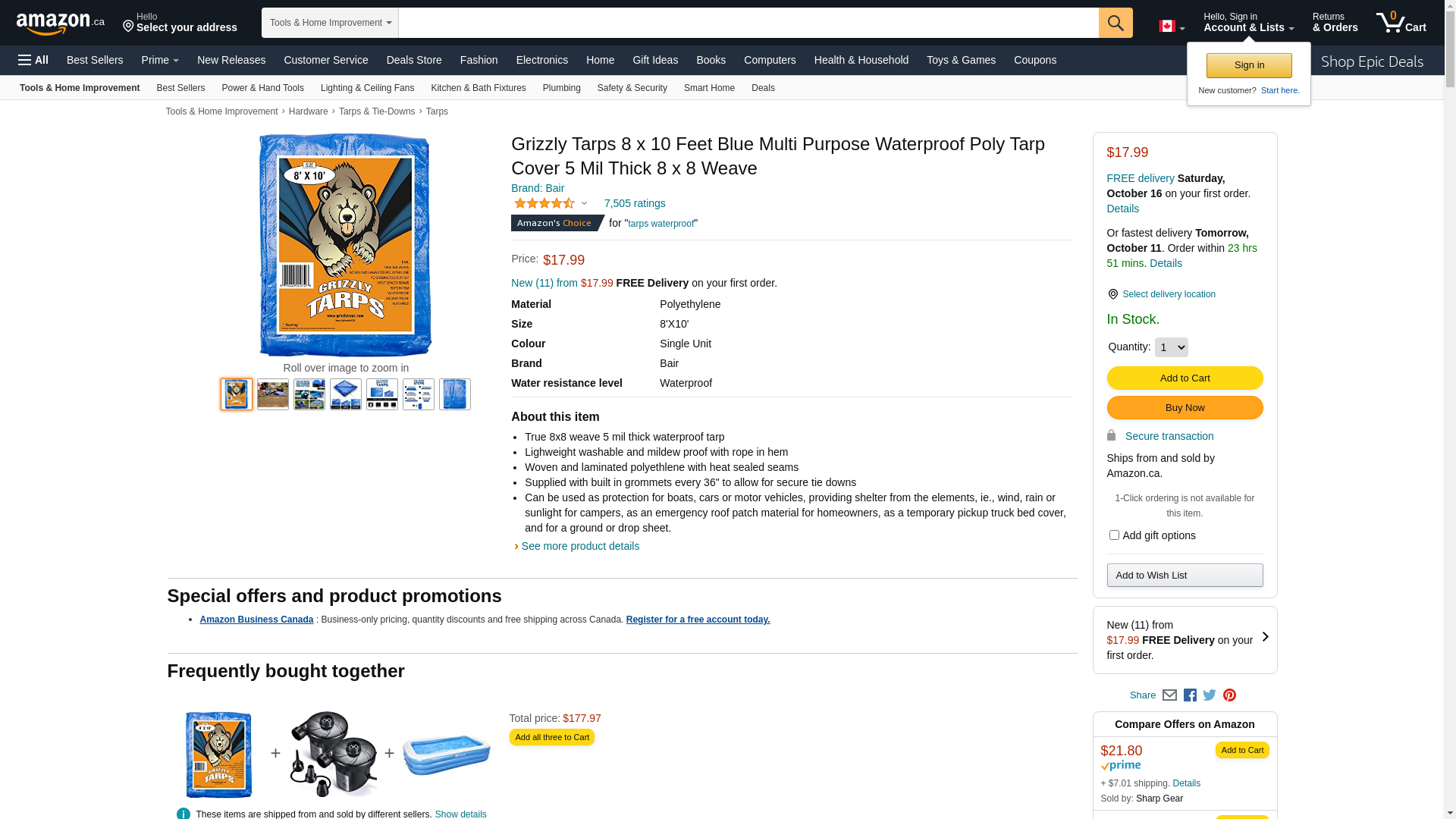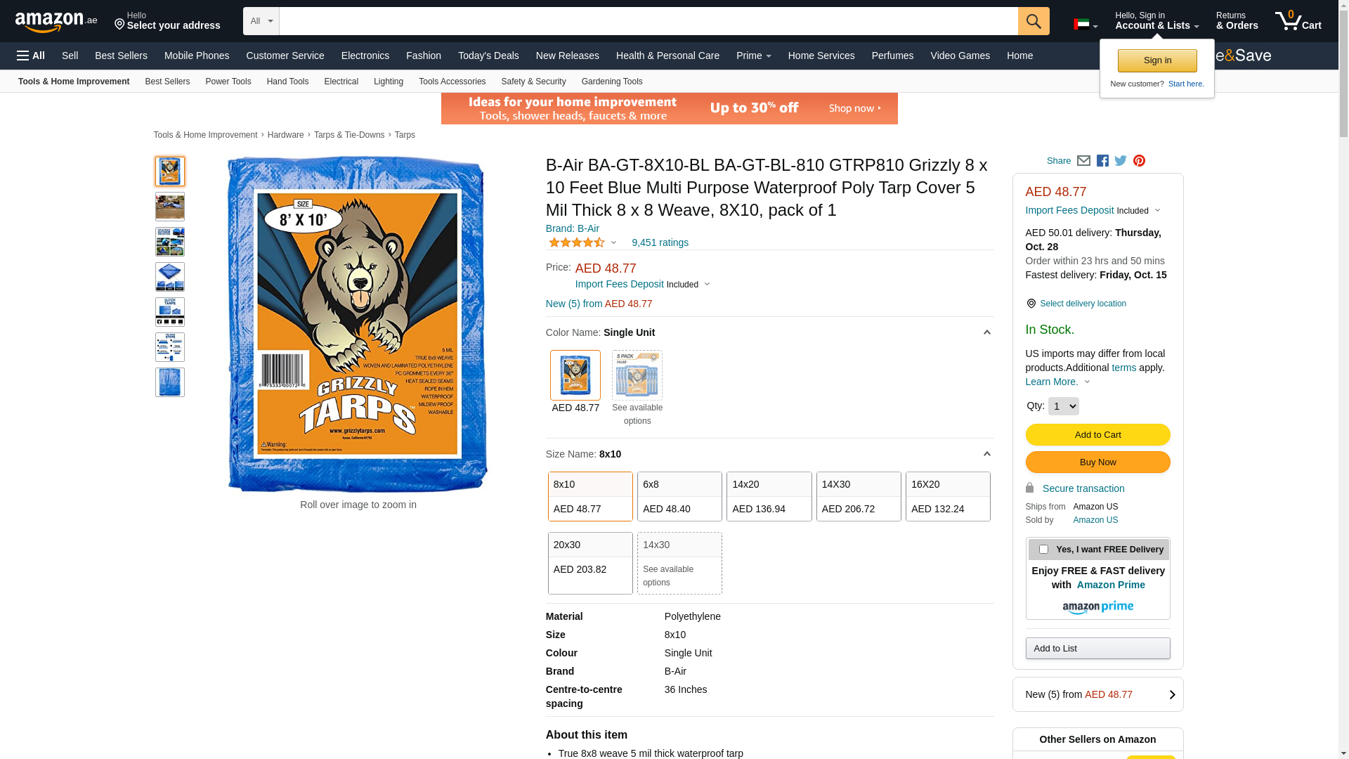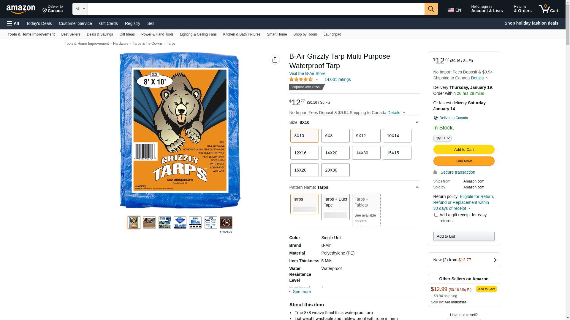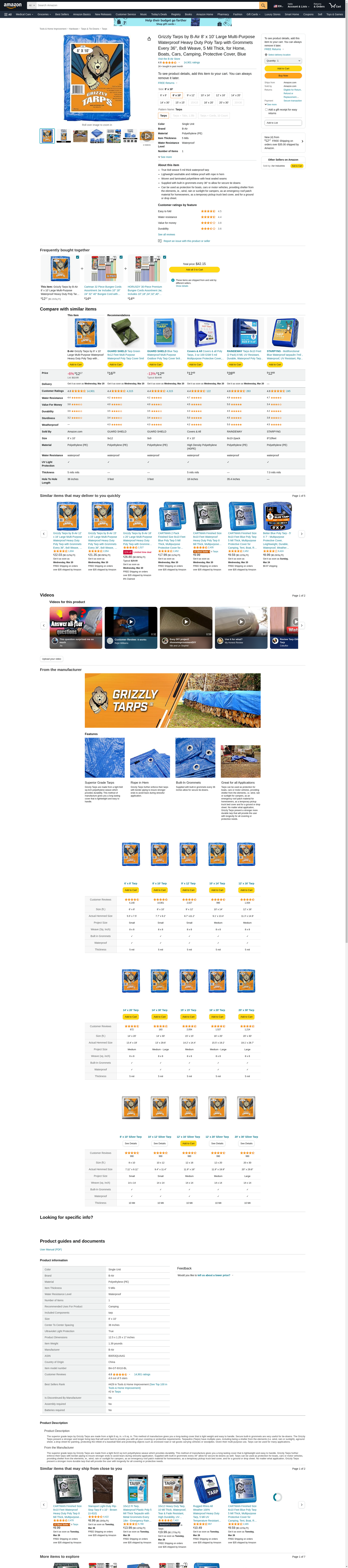 B-Air Grizzly Tarps - Large Multi-Purpose, Waterproof, Heavy Duty Poly Tarp Cover - 5 Mil Thick (Blue - 8 x 10 Feet): Maxedbuy.com