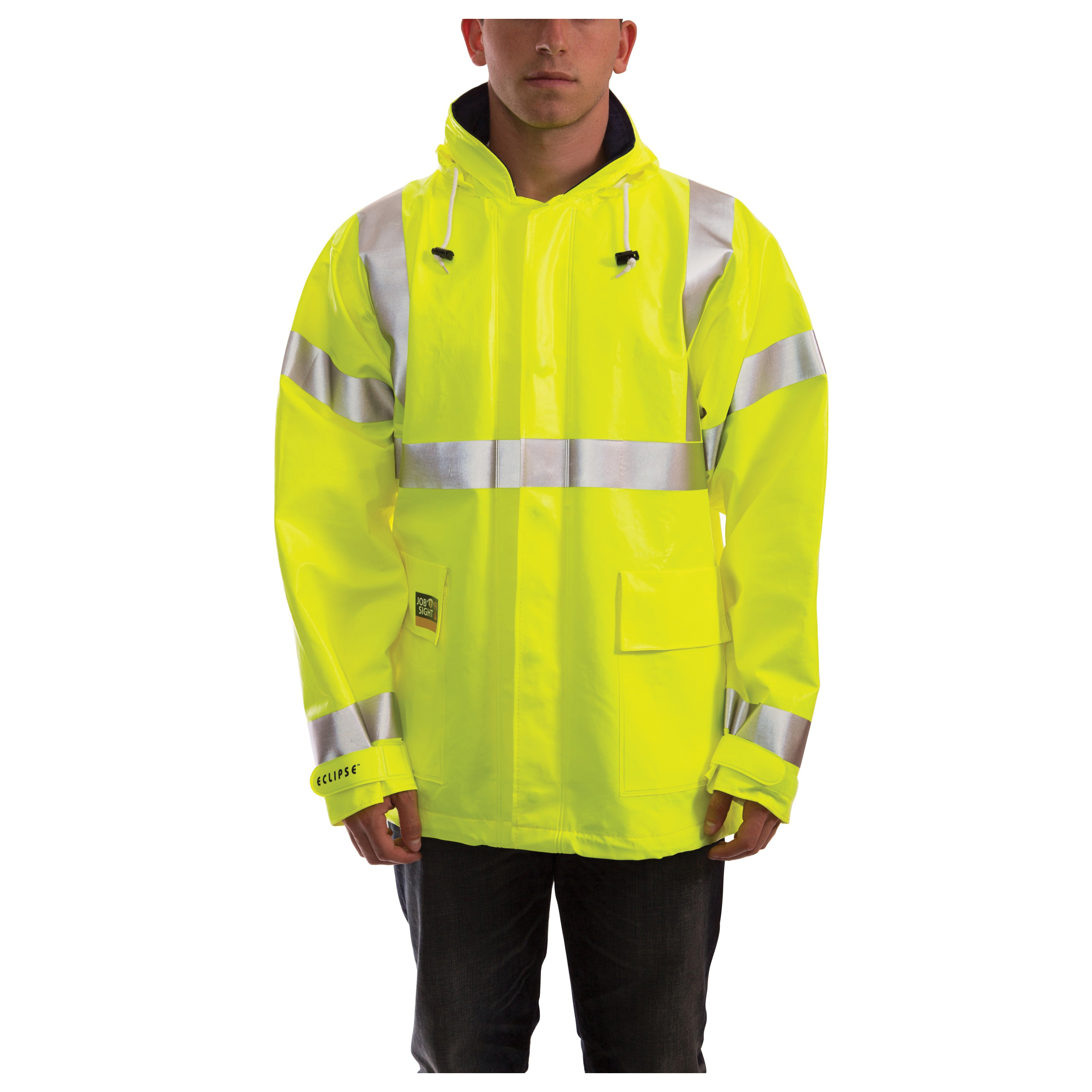 Tingley Eclipse Quad-Hazard High Visibility, Liquidproof, Arc Flash Fire Protection Jacket with Attached Hood, Fluorescent Yellow-Green, Medium