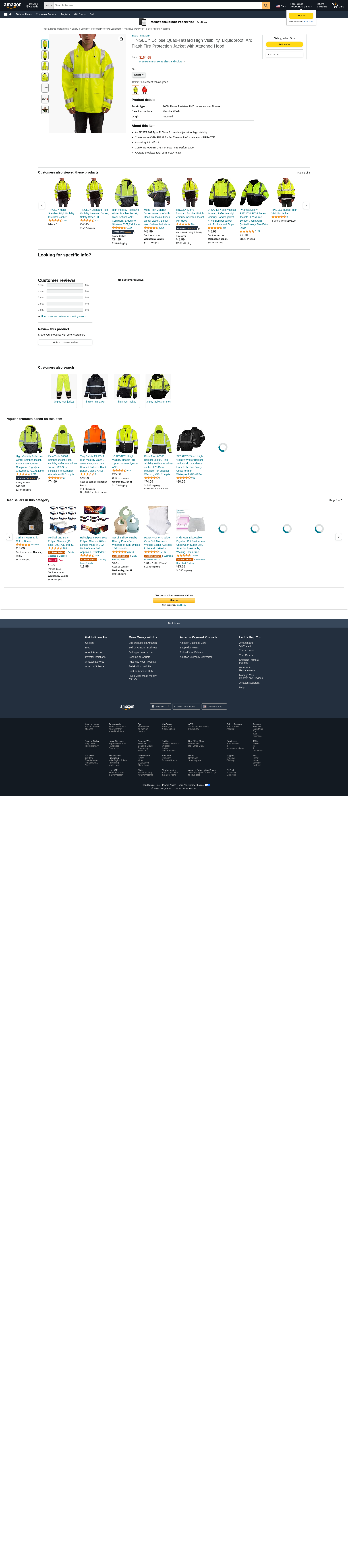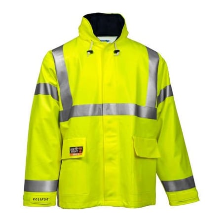 <b>Features:</b><ul style="margin-top:0px;padding-top: 5px; padding-bottom: 5px;"><li>Jacket with attached hood</li><li>ANSI/ISEA 107 Class 3 compliant for flame resistance and high visibility</li><li>Conforms to ASTM F1891 for Arc Thermal Performance and NFPA 70E - HRC 2</li><li>Conforms to ASTM F2733 for flash fire performance</li><li>Fluorescent yellow-green background for excellent daytime visibility</li><li>2" silver reflective tape reflects light for 360° nighttime conspicuity</li><li>Overhead shoulder design for complete freedom of movement</li><li>Therm-O-Rad sealed seams</li><li>Zipper/storm fly front with snap closure and hidden hardware</li><li>Flame resistant corduroy collar with roll-a-way hood</li><li>Oversized 3 piece hood with adjustable hook & loop take-up strap</li><li>Non-conductive, non-corrosive hardware</li><li>Full-vented cape back</li><li>D-ring access for fall protection harness</li><li>Hook & loop take-up straps on wrists</li><li>Adjustable elastic drawcord</li><li>Flame resistant. Self extinguishing with flameout and afterglow less than or equal to 2 seconds after removal of ignition source and char length less than 6 inches. Test method ASTM D6413</li></ul>