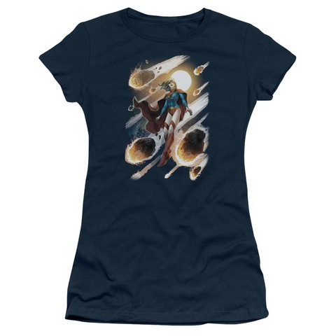 Trevco Jla-Supergirl No.1 - Short Sleeve Junior Sheer Tee - Navy, 2X