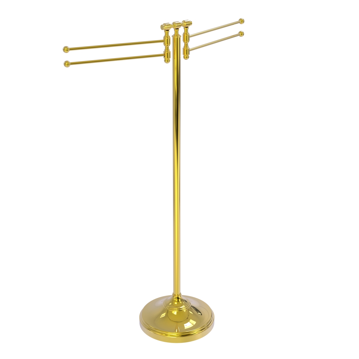 ALLIED BRASS RWM-8-UNL RETRO WAVE 27 INCH TOWEL STAND WITH 4 PIVOTING SWING ARMS, UNLACQUERED BRASS