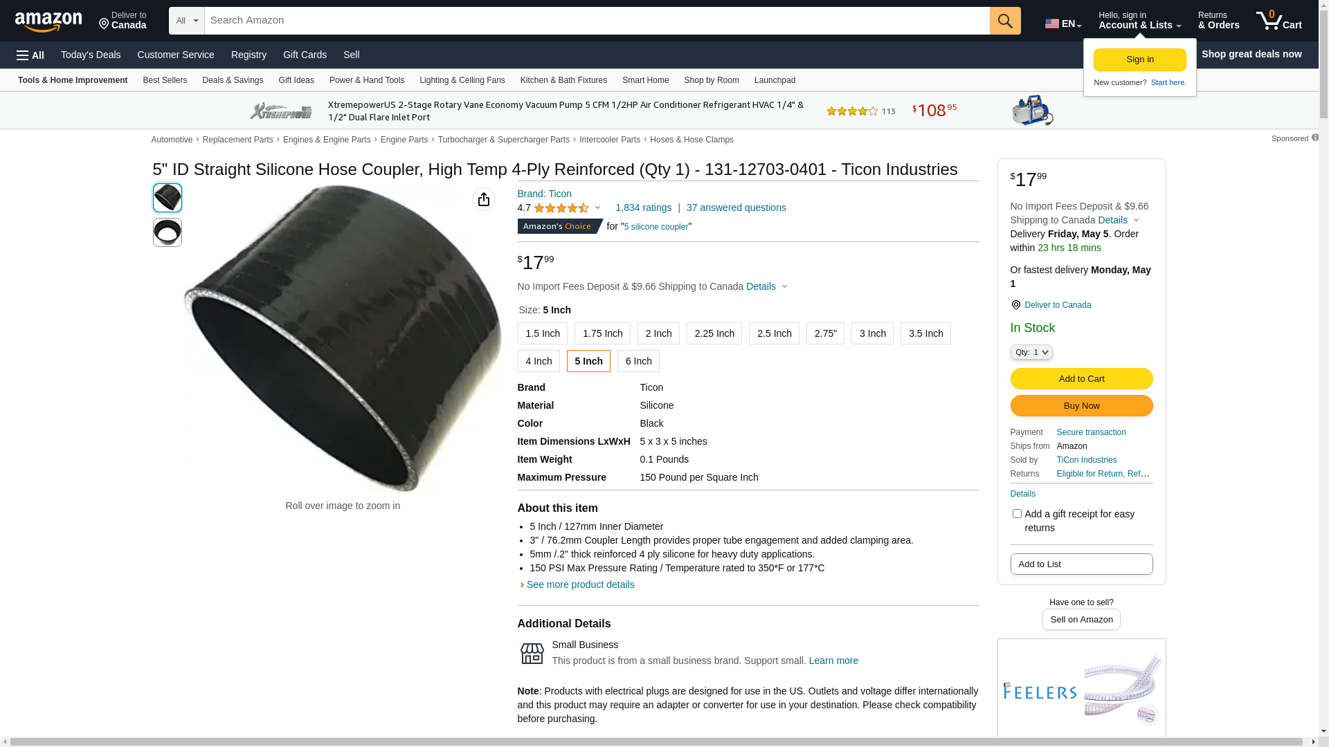 Buy Ticon Industries 4-Ply Black 5.0in Straight Silicone Coupler - 131-12703-0401 for 12.75 at Armageddon Turbo & Performance