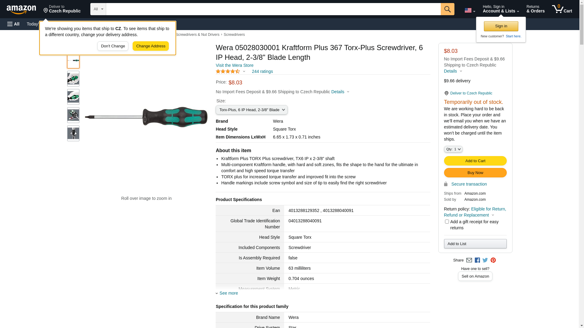 Wera 05028030001 Kraftform Plus 367 Torx-Plus Screwdriver, 6 IP Head, 2-3/8" Blade Length