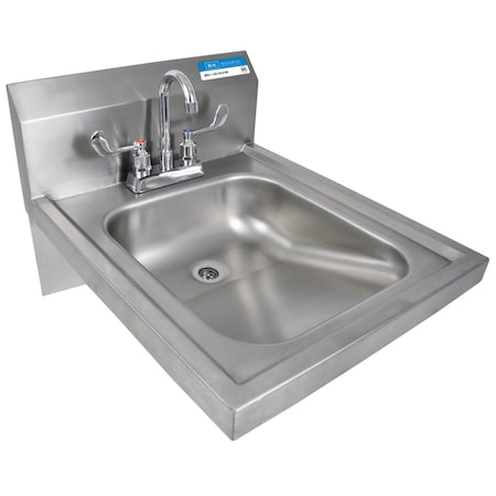 BK Resources BKHS-ADA-D-P-G Stainless Steel 4" Deck Mount 2-Hole ADA Hand Sink 1-7/8" Drain Opening 14"L(Left to Right) x 16"W(Front to Back) x 5" Deep with Wrist Blade & Lead Free Faucet NSF Approved