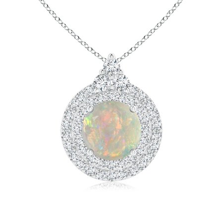<ul> <li>Round Opal and Diamond Double Halo Pendant in 14K White Gold (8mm Opal)</li> <li>Approximate Carat Total Weight 1.78 ct</li> <li>18 inch 14K White Gold Chain Shipped Free With Pendant</li> <li>Free Certificate of Authenticity and 30-Days Easy Returns.</li> <li>*Get a FREE Gemstone Pendant in Silver w/o Chain</li> </ul>