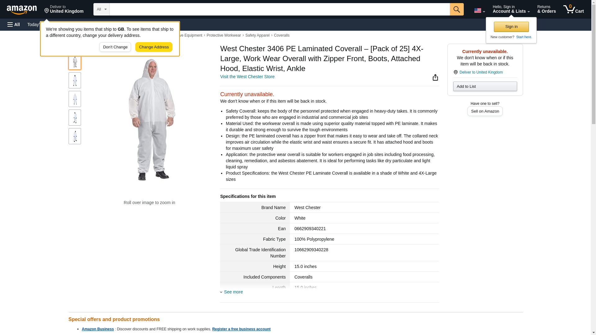 - Product Specifications: the West Chester PE Laminate Coverall is available in a shade of White and 4X-Large sizes