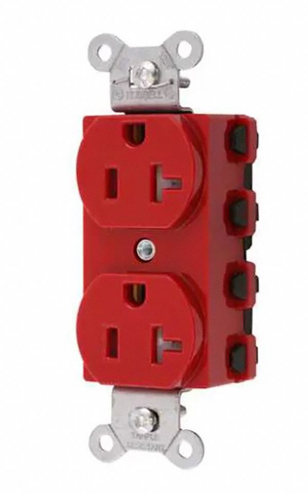 <br /><br /> Item: Receptacle<br /> Type - Plugs and Receptacles: Straight Blade<br /> Application Environment: Commercial Environments<br /> Amps - Plugs and Receptacles: 20<br /> NEMA Receptacle Configuration - Plugs and Receptacles: 5-20R<br /> Voltage - Plugs and Receptacles: 125VAC<br /> Number of Poles: 2<br /> Number of Wires: 3<br /> Tamper Resistant: Yes<br /> Weather Resistant - Plugs and Receptacles: No<br /> Outlet Type - Plugs and Receptacles: Standard Duplex<br /> Mounting Type - Plugs and Receptacles: Flush<br /> Color - Plugs and Receptacles: Red<br /> Item - Plugs and Receptacles: Receptacle<br /> Wiring Method - Plugs and Receptacles: Modular<br /> Surge Suppression: No<br /> Material: Nylon<br /> Phase: 1<br /> HP: 1.0<br /> IP Rating: 20<br /> Power Indicator: No<br /> Corrosion Resistant: No<br /> Number of Gangs: 1<br /> Description: Finder Groove