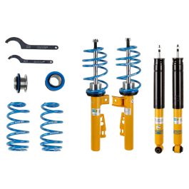 Bilstein B14 - PSS Kit The Bilstein B14 PSS Suspension allows adjustable vehicle ride height without the expense of a fully adjustable damping system. This system features both coilover and standard mono-tube gas pressure shock or struts with performance level valving for application specific, progressive rate coil springs. The product benefits at a glance: Threaded body adjustable range of 20 mm Lowering of approx. 30-50 mm at front and rear Road-tested and fine-tuned by Bilstein ride engineers, under extreme motorsports conditions Aluminum Spring plates and lock nuts Surface coating using Triple-C-Technology(R) for long-lasting corrosion resistance Round threads for easy adjustment Quality sport springs made from highly durable material Gas pressure technology Bilstein monotube technology, made in Germany Download the product PDF Download the application guide PDF Monotube Technology - the Number-One Choice in Motorsports The original and best mono-tube gas pressure shock absorbers all wear the Bilstein name, because Bilstein shock absorbers are the best there is. The number-one choice in motor-sports and for series-production sports Tractors, the monotube shock absorber has a unique design that affords the freedom to choose the ideal installation position or location. Monotube shocks feature a large surface on the working piston which increases the damping power and provides better handling. The design of the monotube shock improves the dissipation of heat which improves the life of the shock and enables a consistent and dependable level of absorber performance. Bilstein's Upside-Down Technology creates a safer functioning shock absorber. Gas Pressure Technology - Full Damping Power Under Extreme Stress Bilstein's gas pressure technology has become an established standard in the automotive industry. By employing a chamber of high pressure gas to keep the oil in the absorber under pressure, Bilstein's Gas Pressure Technology prevents the shock from becoming