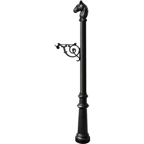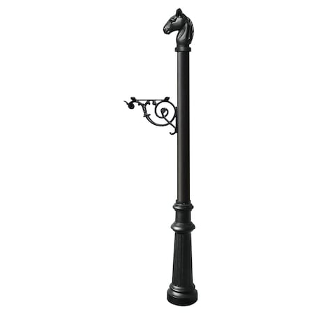 Lewiston Equine Post Only w/Bracket, Horsehead Finial & Decorative Fluted Base, Black