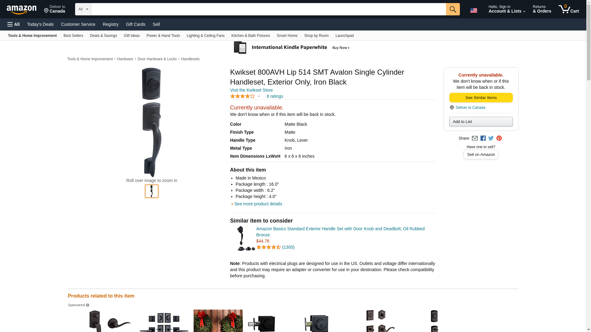 KWIKSET 800AVHLIP-514S 800AVH LIP 514 SMT Avalon Single Cylinder Handleset, Exterior Only, Iron Black