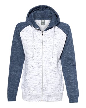 J. America B10128007 Womens Melange Fleece Colorblocked Full-Zip Sweatshirt, White & Navy - 2XL