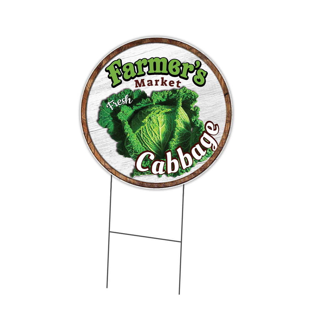 SignMission C-24-CIR-WS-Cabbage Corrugated Plastic Sign with Stakes 24 in. Circular - Farmers Market Cabbage