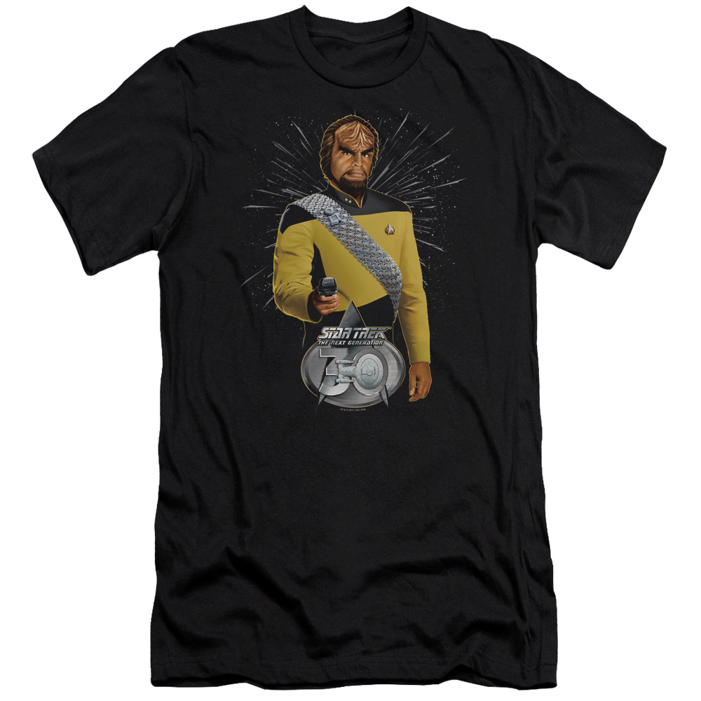 Trevco CBS2252-PSF-3 Star Trek & Worf 30 Adult Premium Canvas Slim Fit 30-1 HBO Short Sleeve T-Shirt, Black - Large