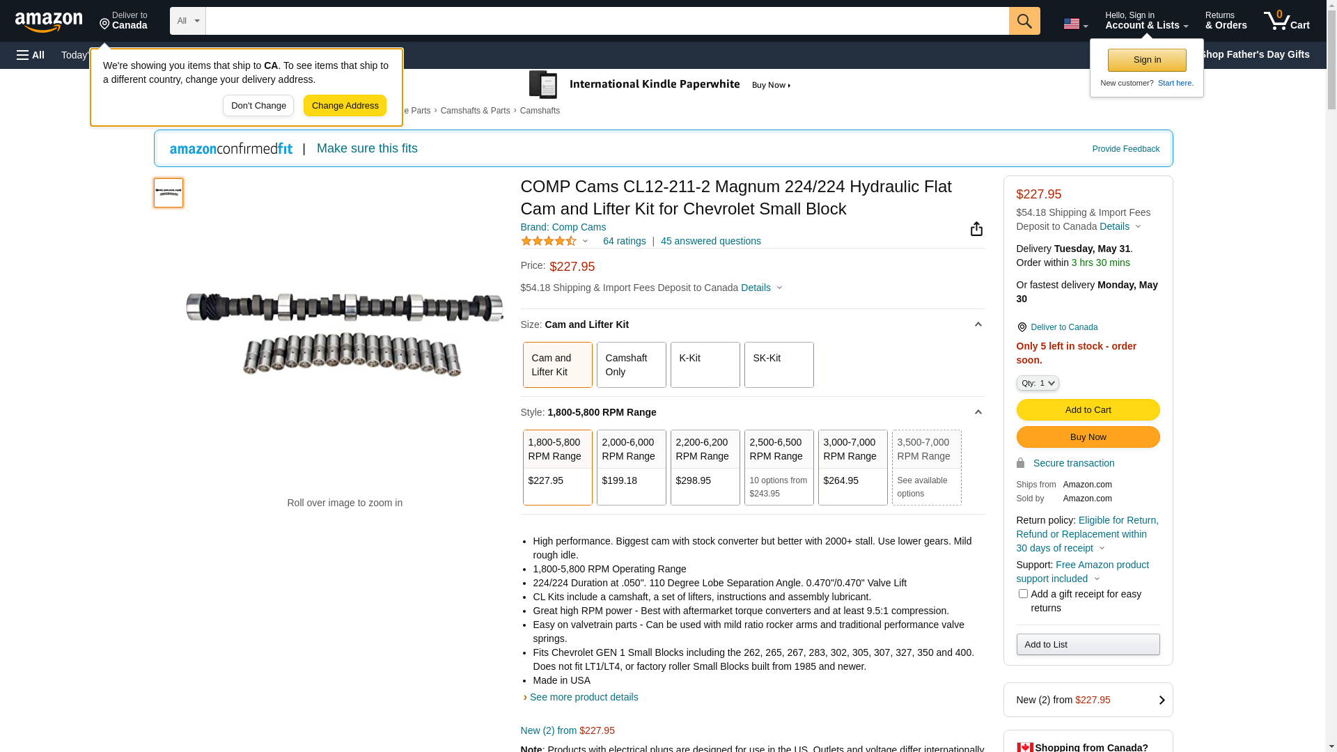 COMP Cams CL12-211-2 Magnum 224/224 Hydraulic Flat Cam and Lifter Kit for Chevrolet Small Block