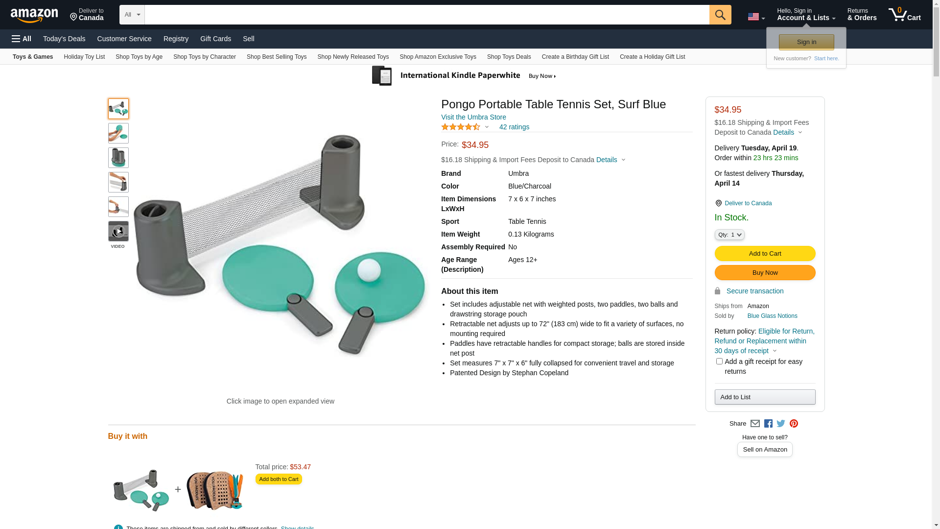 Pongo Portable Table Tennis Set, Surf Blue