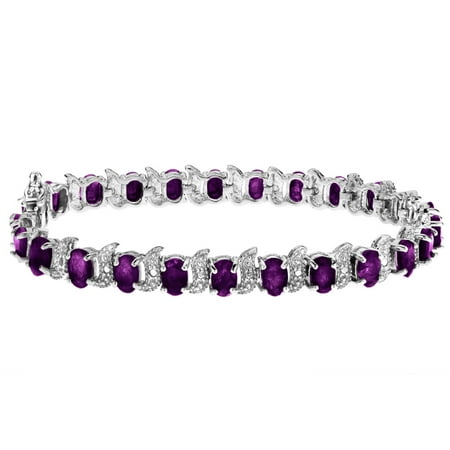 Twenty five 6x4mm oval shaped Amethysts adorn a sterling silver band in this stunning bracelet Total gemstone weight equals 10 carats (ctw).