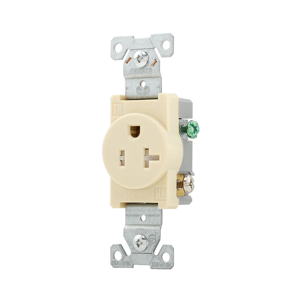 Eaton TR1877V-SP-L Heavy Duty Tamper Resistant Single Receptacle with 20-Amp, 125-Volt, NEMA 5-20, Ivory
