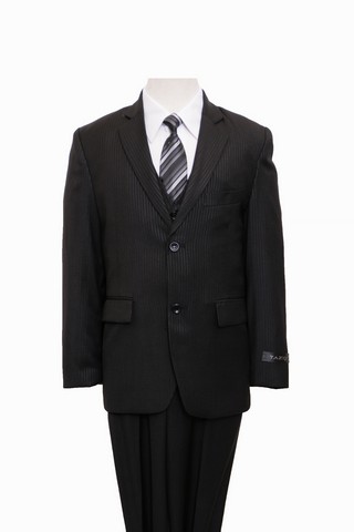 Mens Suits Tonal Stripe 2 Button Front Closure Interior Pick Stitching Boys Suits Black - 7