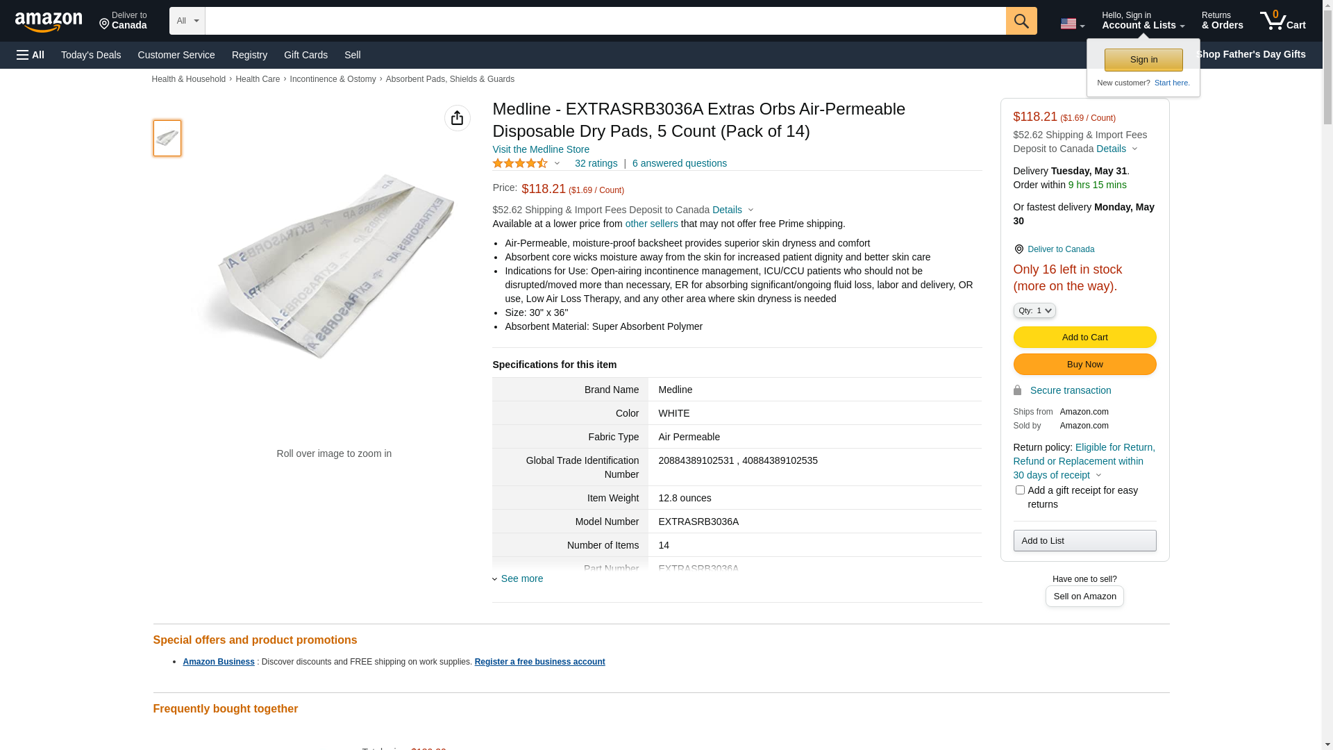 | graylinemedical.com | EXTRASRB3036A | 1 | -2 | 1 | 1 @ $23.99 |