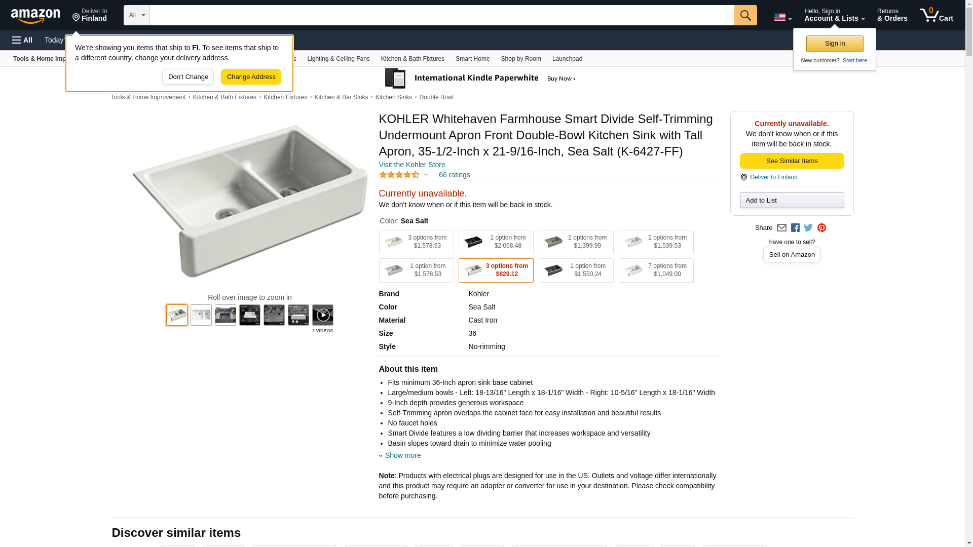 | Feature | Fits minimum 36-Inch apron sink base cabinet |