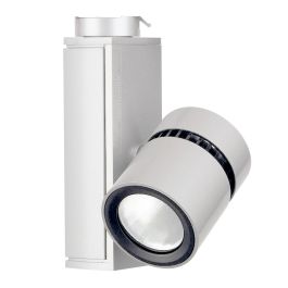 LLAV0030WH Finish / Globe Type: White / 3000K Features: -Vertical LED Micro Cylinder Track Light.-Available in 2700K or 3000K globe types.-LED board: metal core board.-4 tightly packed high brightness white led's.-Track Attachment Fitting: Molded polycarbonate.-Rotates into track and locks into place with the use of push tabs.-Push Tab: Molded polycarbonate. Locks and detaches unit.-Track Adaptor Housing: Die-cast aluminum.-Movable Brass Contact: Brass extends for connection to second circuit Advent track only.-Driver Housing: Extruded housing with die-cast aluminum covers.-Interchangeable optics: sold separately.-+/- 5pct for 3000K.-Integrated housing heat sink: die-cast aluminum maintains LED junction temperature for minimum 50,000 hr lifetime at 70pct lumen maintenance. Color/Finish: -Integral color in gray, black or white. Specifications: -10W, 440* Nominal Lumens.-Pivot Mounts: Allows for 350 horizontal and 320 vertical rotation. Dimensions: -Dimensions: 6.19'' H x 4.38'' W x 3'' D. Collection: -Track collection.