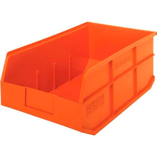 Quantum Plastic Stacking and Hanging Shelf Bin SSB465 11"W x 18"D x 7"H, Orange - Pkg Qty 6