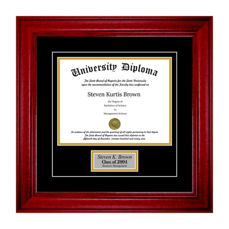 Personalized Single Diploma Frame with Double Matting for 14" x 11" Tall Diploma with Cherry 2" Frame