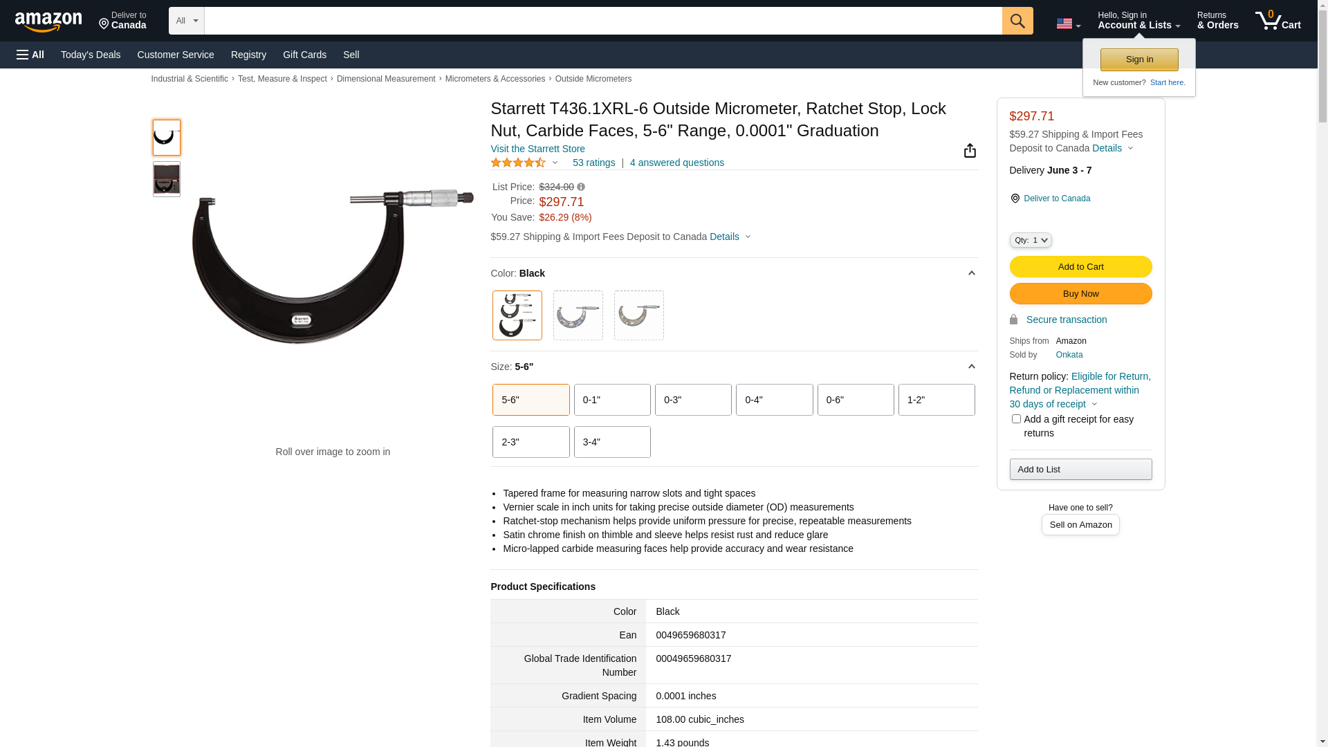 STARRETT,STARRETT 5-6IN..0001 OUTSIDE MICROMETER,1-855-68031,KBC Tools & Machinery