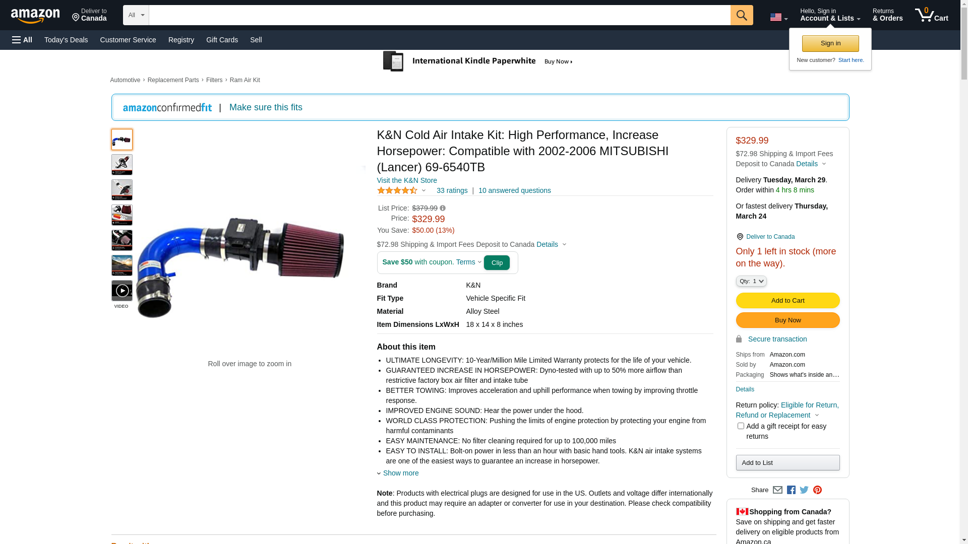 ![]() automotivestuff.com | K&N-69-6540TB | 1 | -2 | 1 | 1 @ $399.99 |