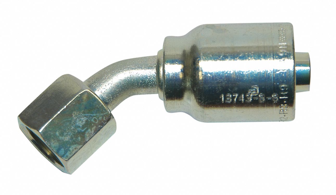 HYDRAULIC HOSE FITTING, BARB, CRIMP, 45