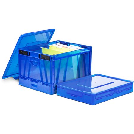 Storex Collapsible Crate with Lid,17.25 x 14.25 x 10.5 Inches, Blue, Case of 2 (61804U02C)