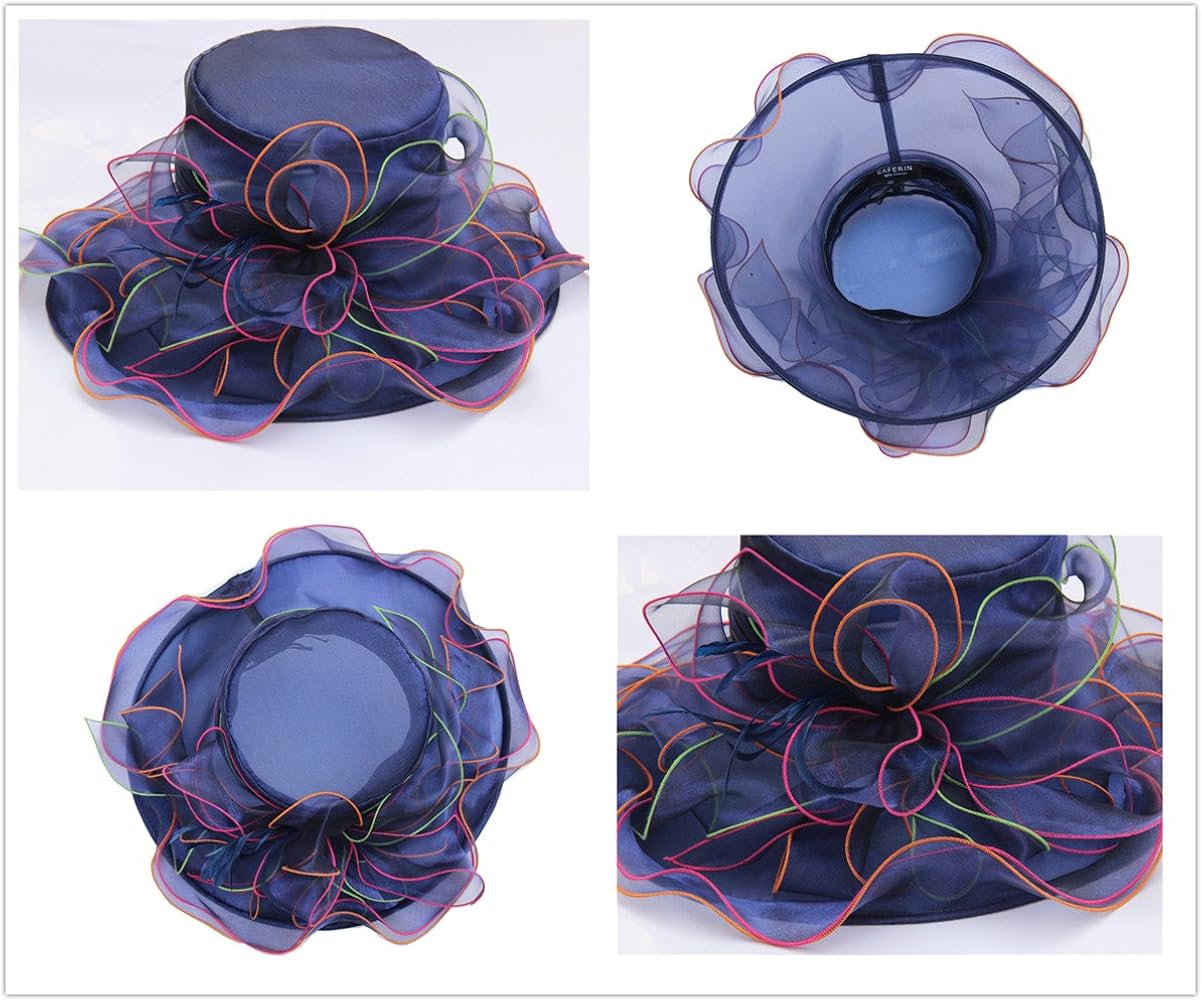 SAFERIN Women's Organza Church Kentucky Derby Cap British Tea Party Wedding Hat (Navy Colorful)