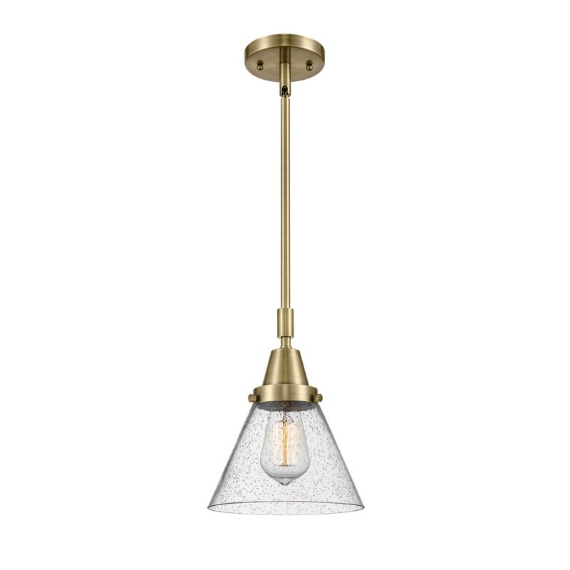 INNOVATIONS LIGHTING 447-1S-AB-G44 CONE FRANKLIN RESTORATION 8 INCH 1 LIGHT CEILING MOUNT MINI PENDANT, ANTIQUE...